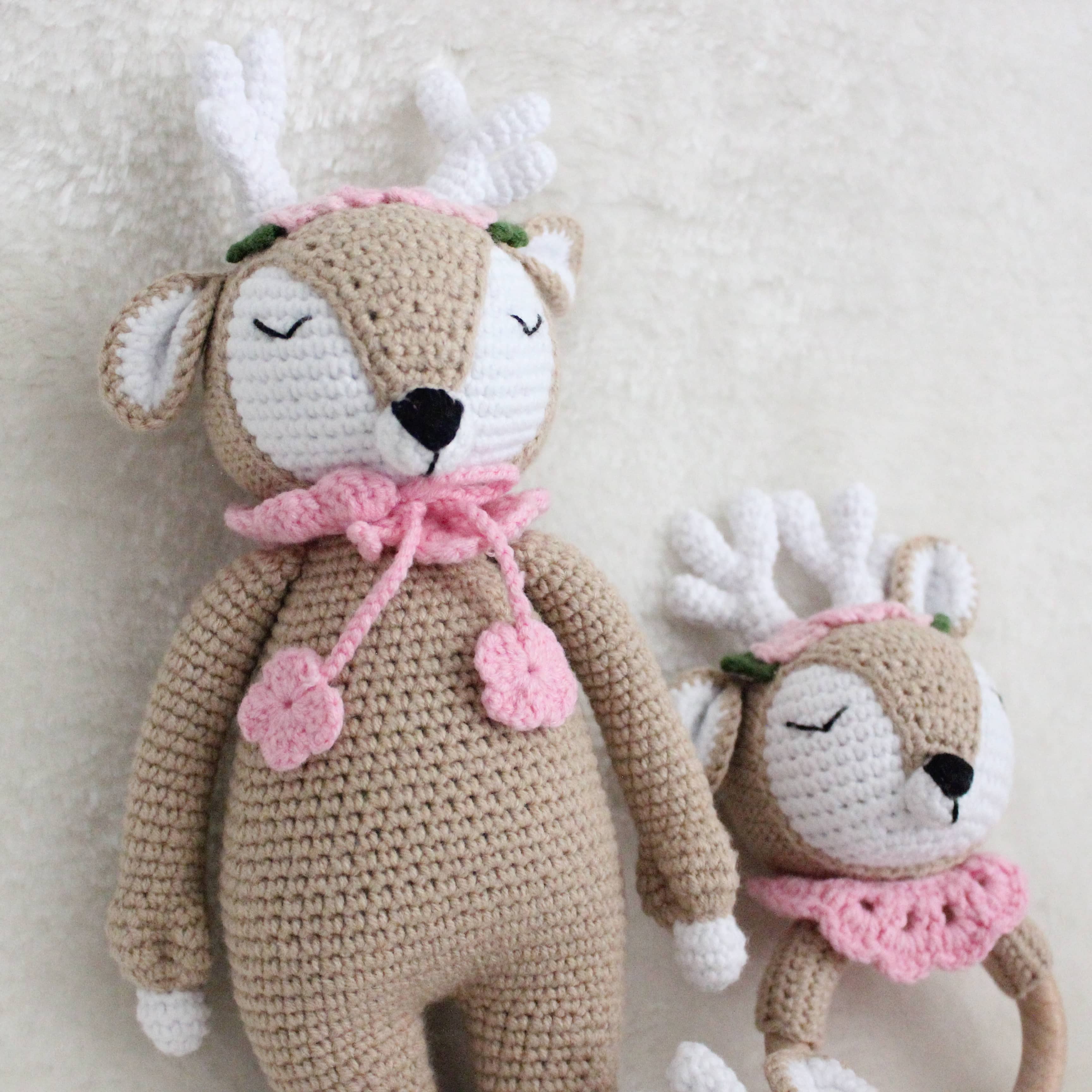 Amigurumi Set – Kuscheltier & personalisierbare Schnullerkette mit Rassel Dieses liebevoll handgefertigte Amigurumi-Set ist das perfekte Geschenk für kleine Entdecker und ein wunderschöner Begleiter im Alltag. Es besteht aus einem kuschelweichen Häkel-Tier, einer personalisierbaren Schnullerkette mit integrierter Rassel und einem Holzbeißring – alles in einem harmonisch aufeinander abgestimmten Design. Personalisiert mit deinem Wunschnamen Mach dein Set zu etwas ganz Besonderem: Die Schnullerkette kann individuell mit dem Namen deines Kindes gestaltet werden. Trage einfach den gewünschten Namen bei der Bestellung in das entsprechende Feld ein. Hochwertige & kinderfreundliche Materialien Alle Teile werden aus 100 % Baumwollgarn gehäkelt und enthalten keinerlei schädliche Stoffe – perfekt geeignet für Babys und Kleinkinder. Die verwendeten Holzperlen und der Beißring sind speichelfest und glatt verarbeitet. **Pflegehinweise:** - Kuscheltier: Waschbar bei 30 °C im Schonwaschgang. Kein Bleichmittel verwenden. Liegend trocknen – bitte nicht aufhängen. - Schnullerkette & Rassel: Nicht waschen. Bitte nur mit einem feuchten Tuch abwischen. Dieses Set wurde mit viel Liebe zum Detail gefertigt – wir hoffen, es findet einen Lieblingsplatz in eurem Zuhause und wird ein treuer Begleiter für viele schöne Momente.
